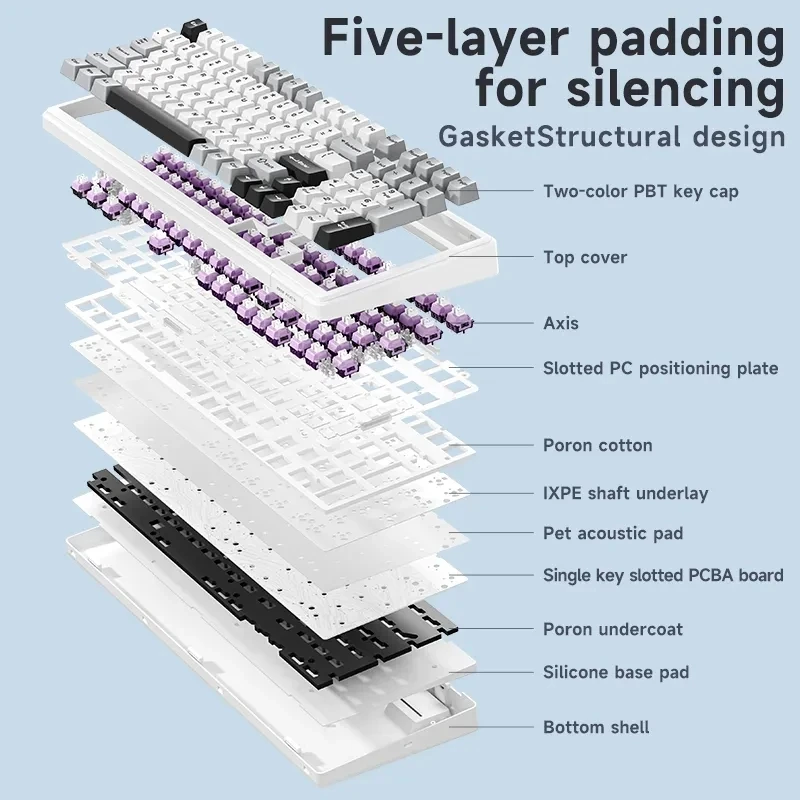 • PBT Gasket RGB :Equipped with PBT gasket RGB, this keyboard not only delivers superior comfort but also adds a stylish touch to your gaming setup.